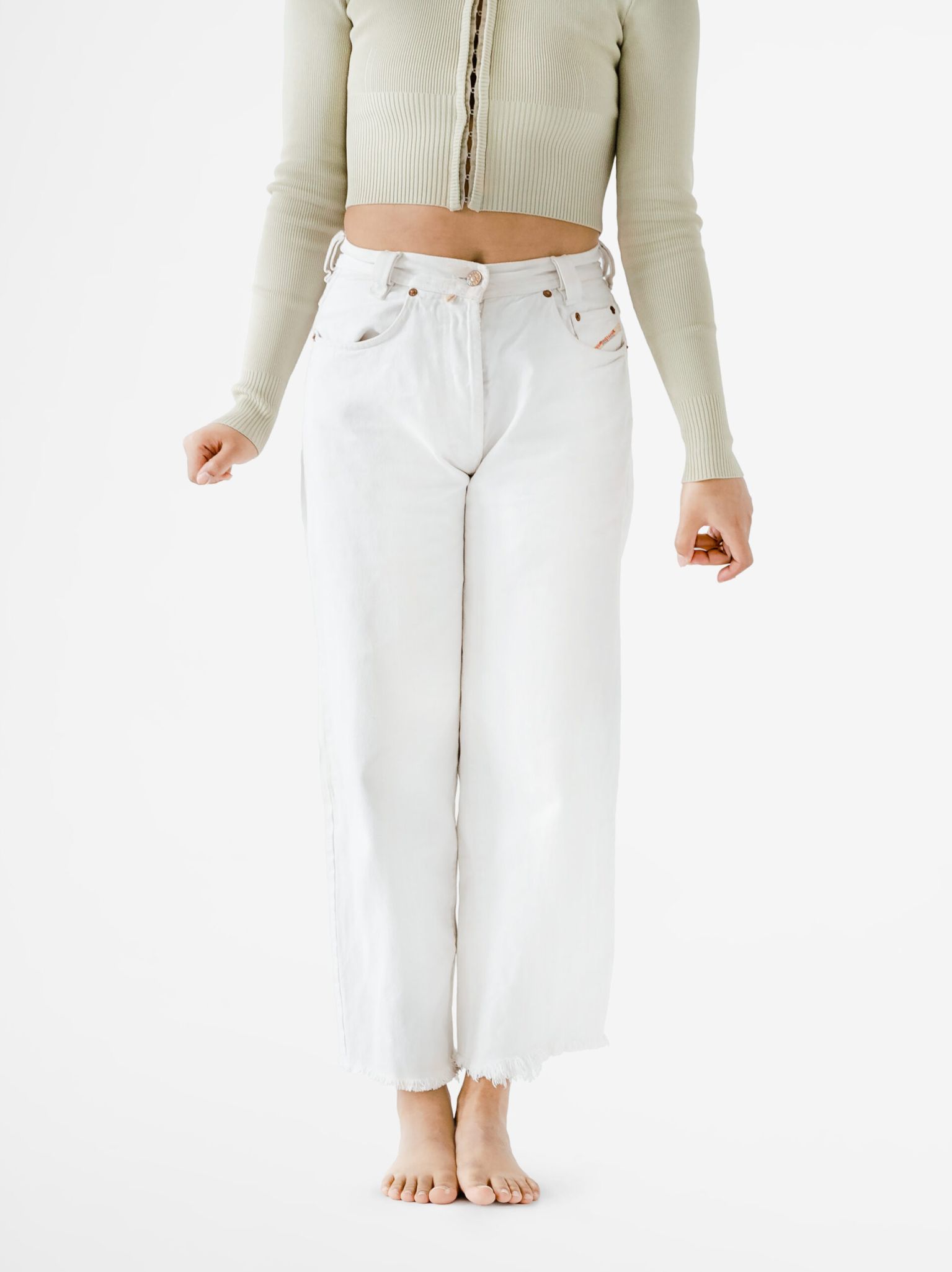 Mid-Waist White Jeans