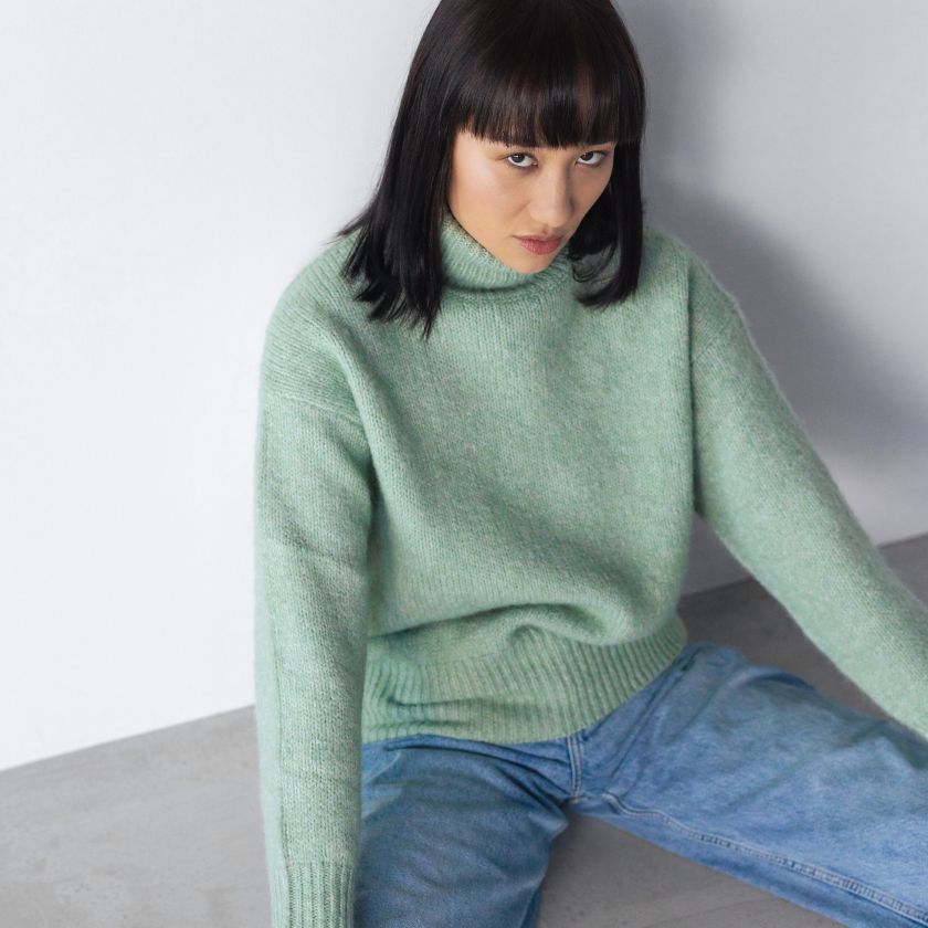 74% Wool, 26% Cashmere. Handle with love.