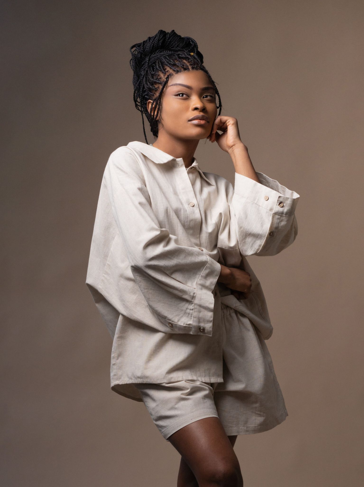 Flared Cotton Button Down Shirt