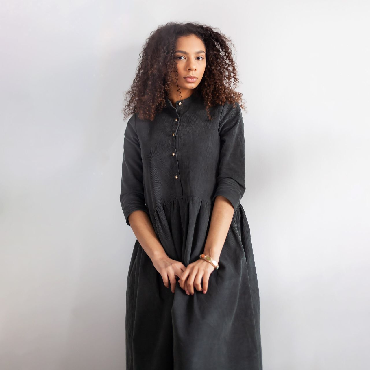 Long-Sleeve Corduroy Dress